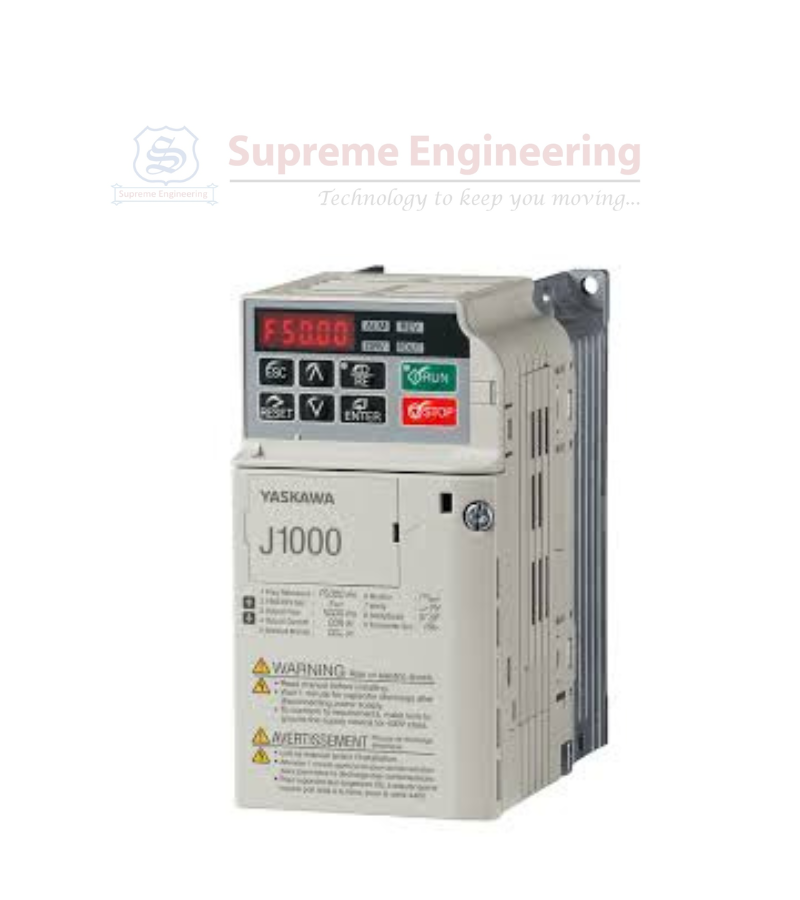 The Yaskawa J1000 is a compact and reliable variable frequency drive (VFD) designed for simple and efficient control of AC induction motors. It offers an economical solution for applications requiring basic speed control and energy-saving operation. With a focus on ease of use, space efficiency, and durability, the J1000 is ideal for a wide range of small industrial and commercial applications.