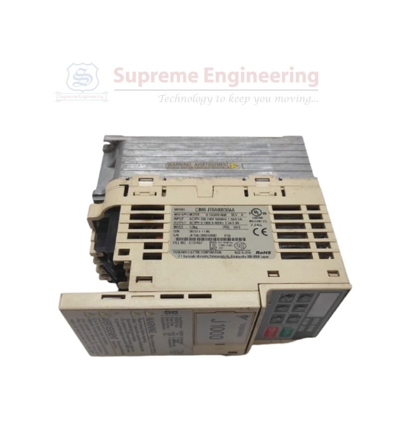 The Yashkawa J1000 VFD drive’s user-friendly interface ensures quick setup and monitoring, while its fault diagnostic capabilities simplify troubleshooting. Its robust design ensures reliable performance in demanding conditions.